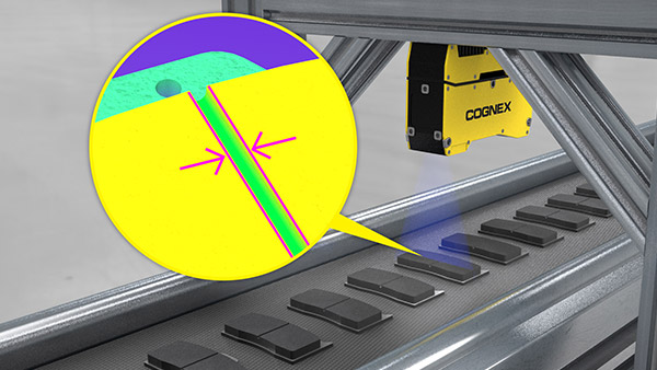 使用 PatMax3D 定位皮帶上的連桿并測量尺寸,確保沒有零件缺陷。