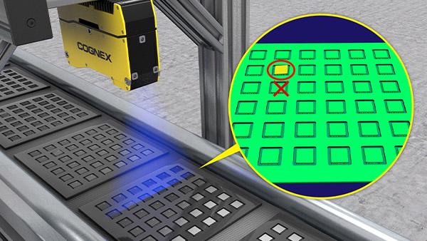 通過測量位置和平整度判斷芯片是否已正確地位于托盤中